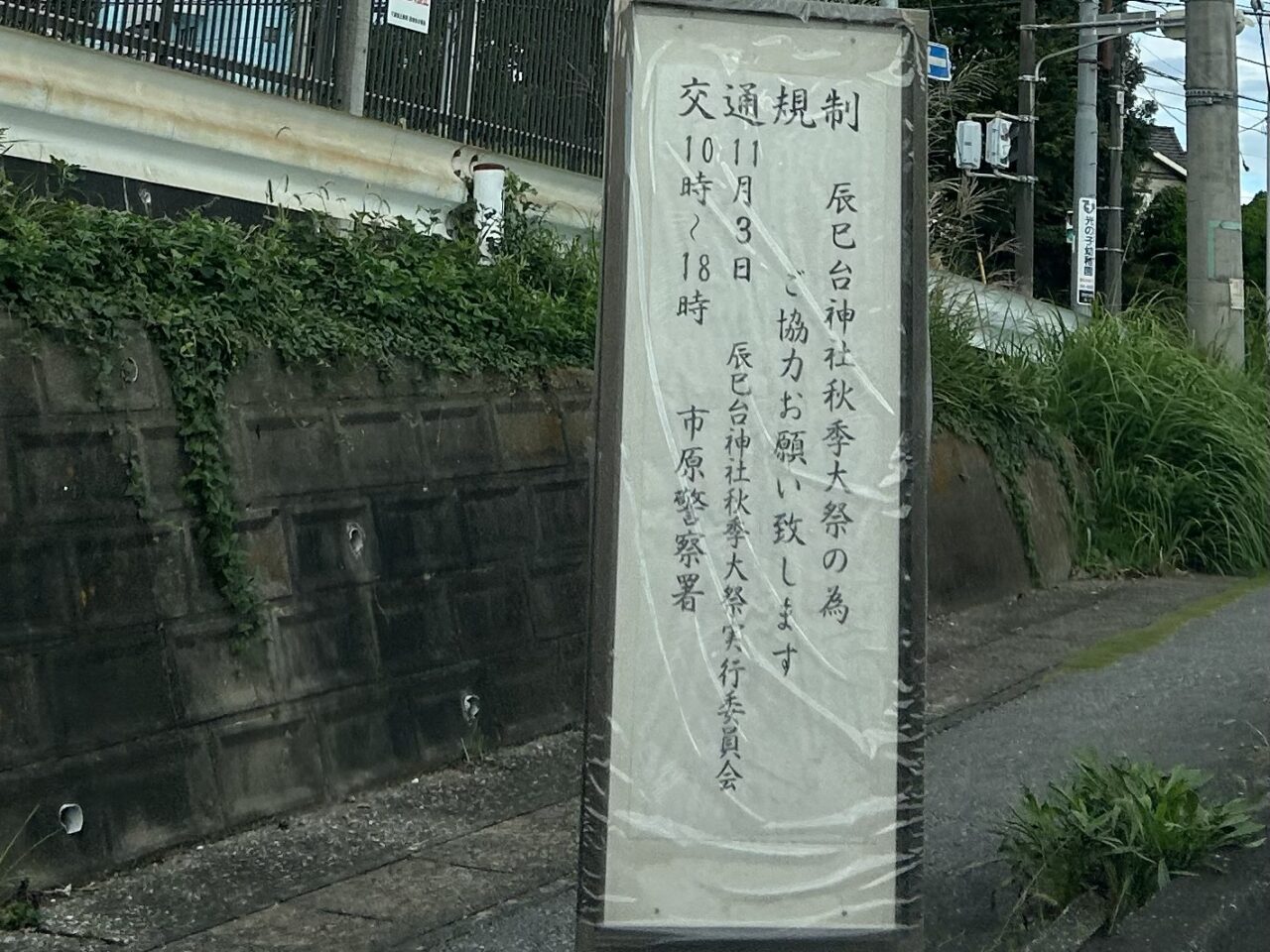 辰巳台神社秋季大祭が開催される11月3日(月)は交通規制がかかりますので、周辺道路をご利用の方はお気をつけてください。