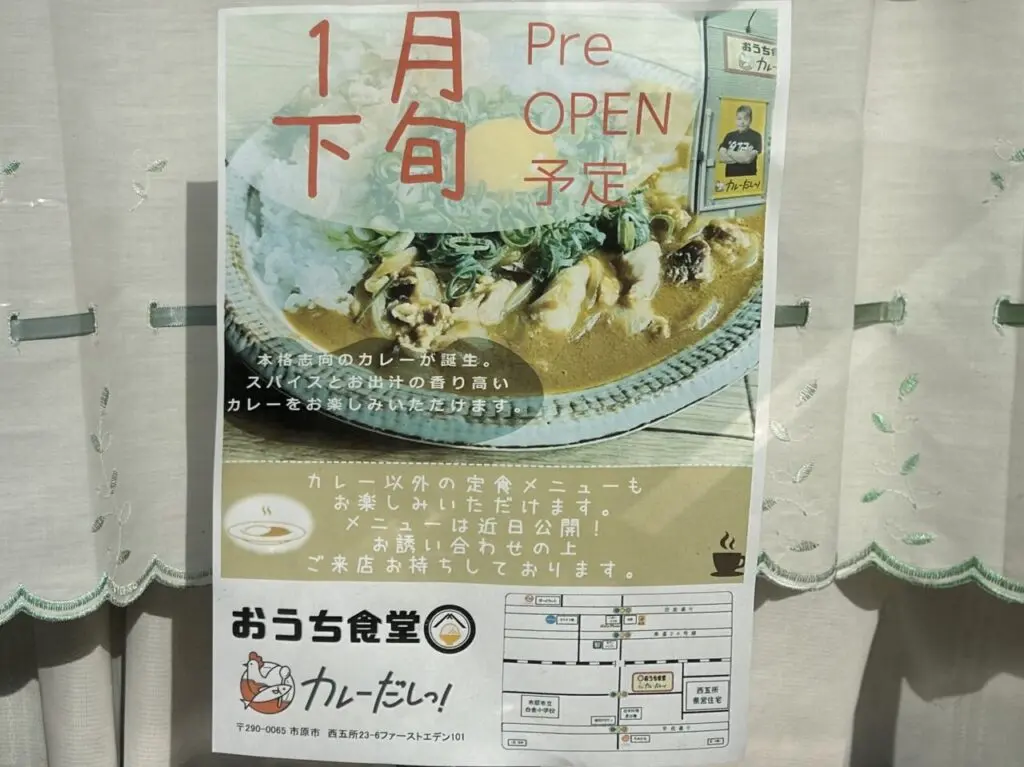 【市原市】西五所に『おうち食堂 カレーだしっ!』が1月下旬にプレオープン予定!