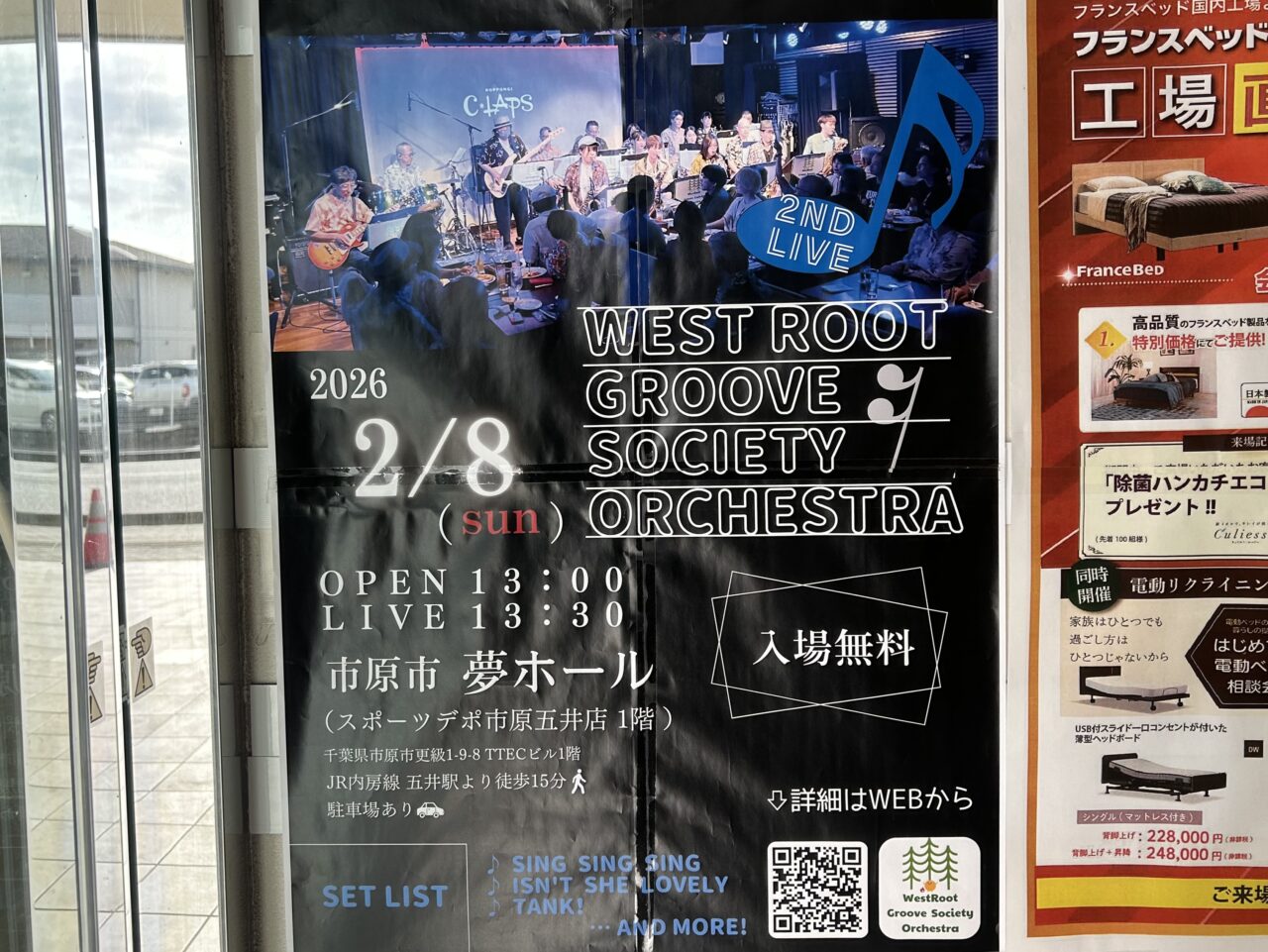 WEST ROOT GROOVE SOCIETY ORCHESTRA では、ビッグバンドによる生演奏を披露!第7回夢ホールコンサートは、市原市楽友協会オーケストラによる生演奏と指揮者に挑戦のコーナーもあるそうです!