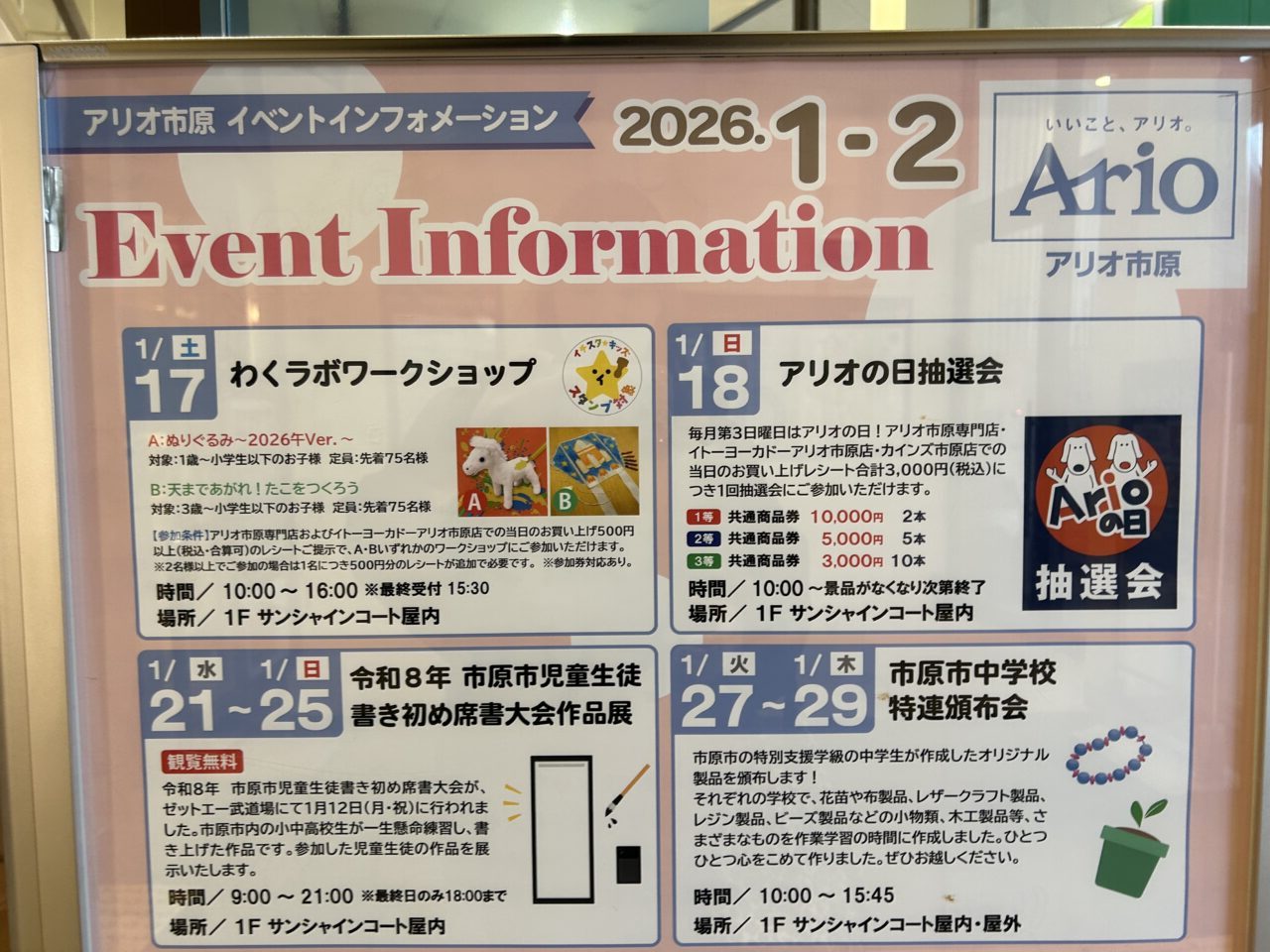 イベント盛り沢山のアリオ市原へ、足を運んでみてはいかがでしょうか。