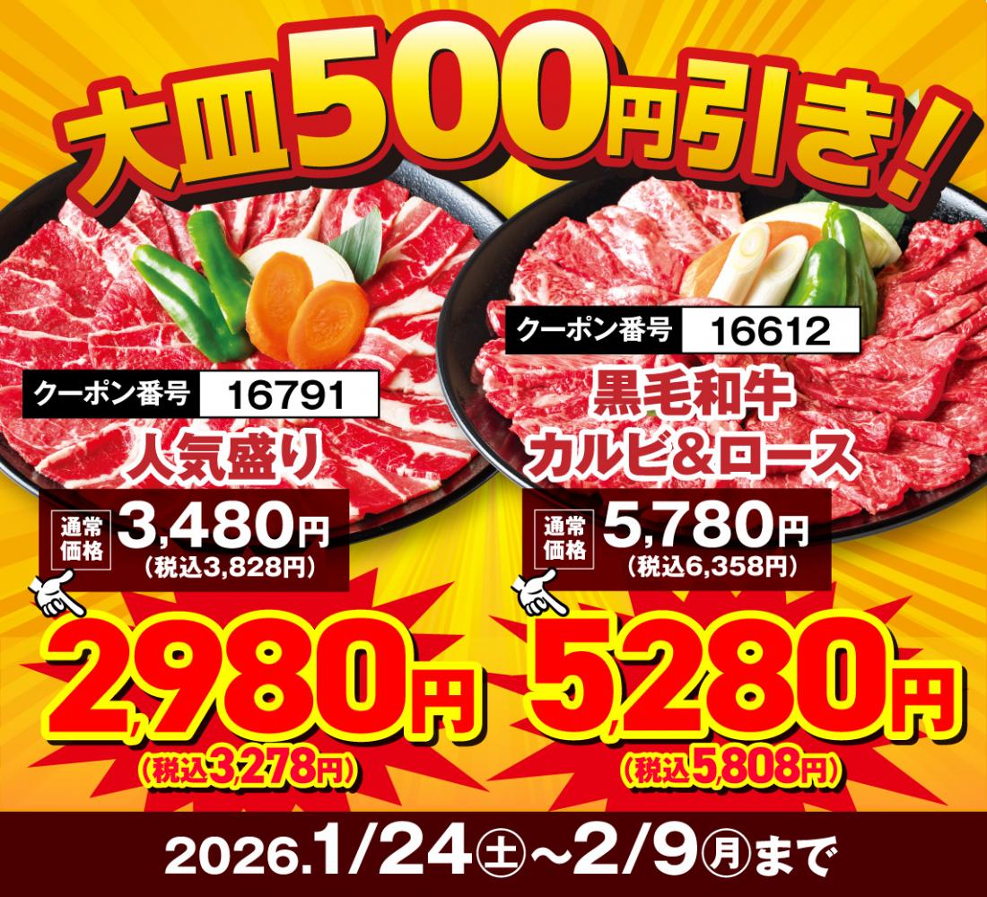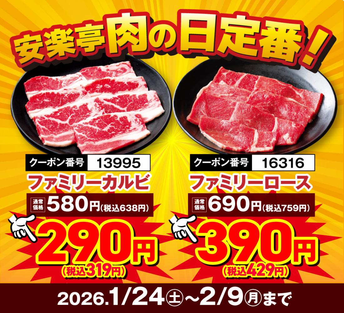 1月24日~スタート!【1月29日&2月9日は“W肉の日”】17日間の”肉の日リレーフェア”開催!【焼き肉レストラン 安楽亭 市原国分寺】