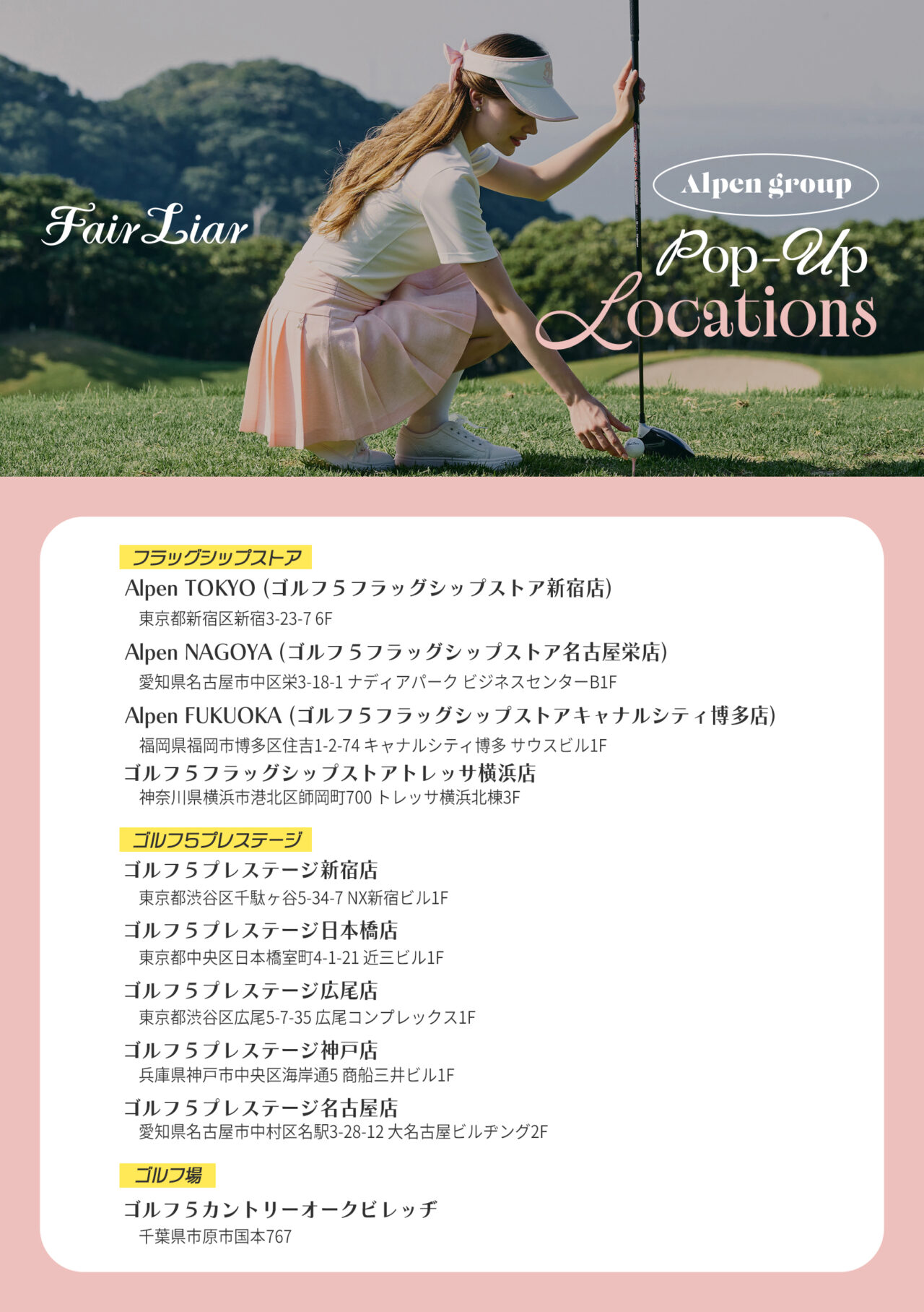 株式会社COENSEN GLOBALが展開する、韓国発のラグジュアリーゴルフウェアブランド「Fairliar(フェアライアー)」が2026年2月1日(日)~2月28日(土)までの期間限定で、全国のアルペングループ10店舗にてPOPUP STOREを開催中です。